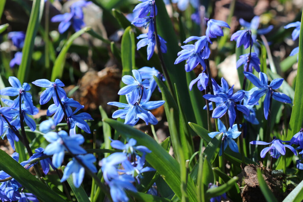 Det var vakker blomstring av de første vårblomstene, og overalt blomstret skilla, snøklokker, påskeliljer og hyasinter. Og mange andre vårblomster, så klart. Det var et livlig fugleliv der (og folkeliv!), og det luktet av tidlig vår.
