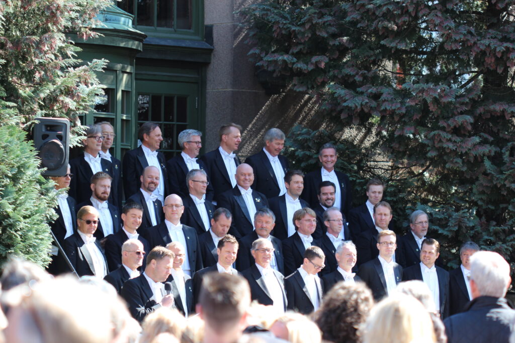 Vi gikk rundt i hagen i flere timer. Så på blomster, fotograferte, drakk kaffe og koste oss. Avslutningsvis fikk vi med oss en konsert til vårens pris, – med Gulbergs akademiske kor, som sang våren inn på trappen til Botanisk museum.