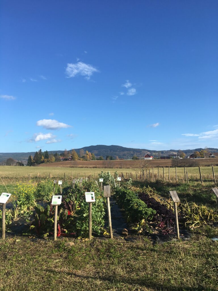 Her var det forsøksfelt for eksotiske grønnsaker. Så bra at en forsøker å dyrke eksotiske grønnsaker i Norge!