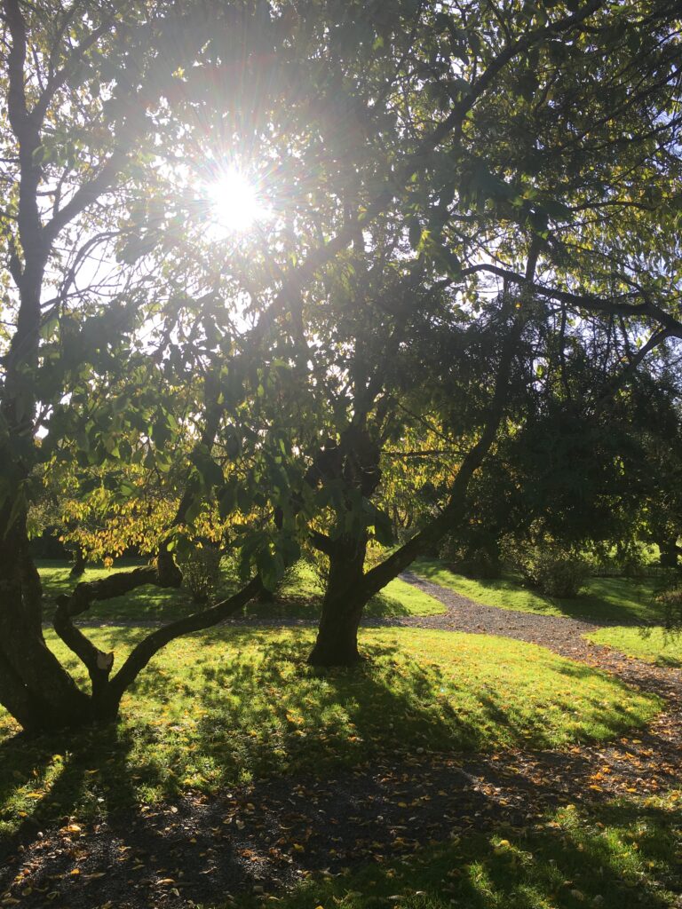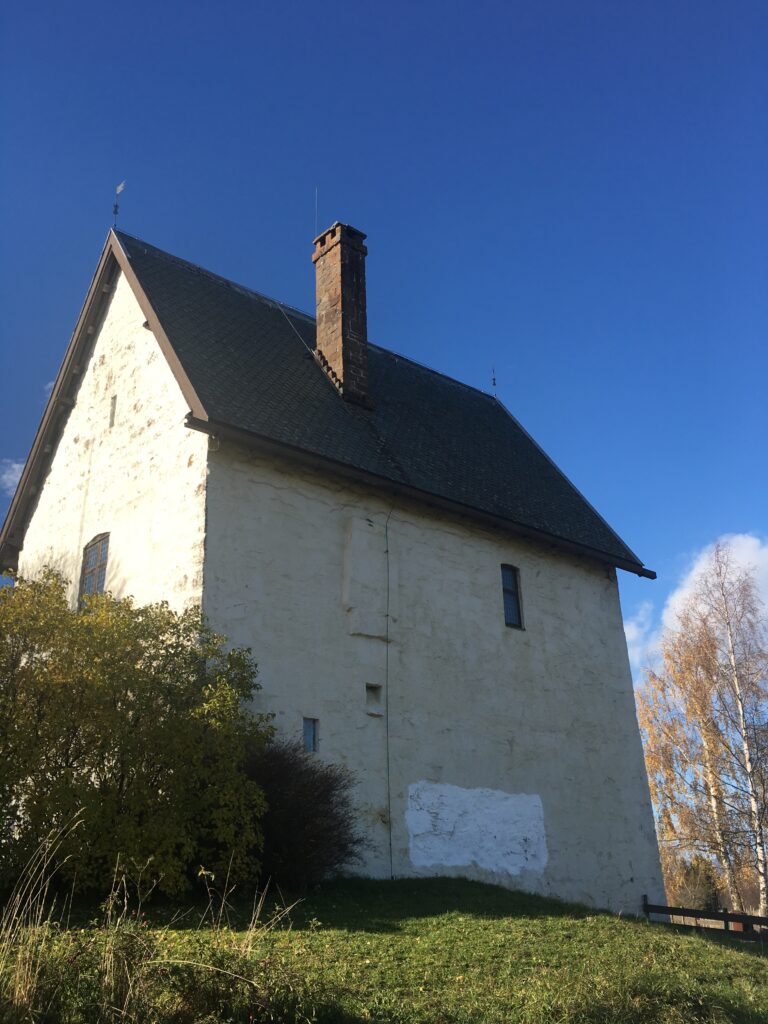 Deretter dro vi til Steinhuset som lå noen hundre meter fra Søsterkirkene. Steinhuset er en gammel steinbygning fra 1200-tallet, og den står like ved siden av prestegården i Gran. Det lå også en vakker besøkshage ved Prestegården – Prestegårdshagen.