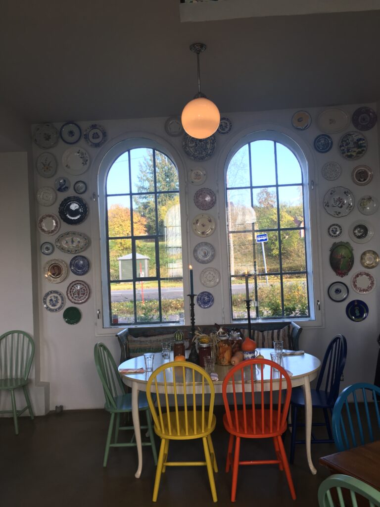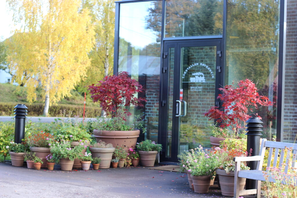 Like ved kirkene lå Granavollen Gjestgiveri og Glasslåven kunstsenter. Vi gikk til Glasslåven og så på utstillingene der.