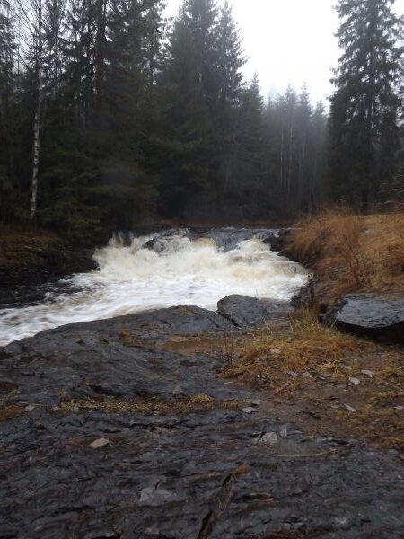 En ting skal være sikkert, i dag var det vått ute i skogen – veldig vått! Det var vann overalt; i stien, i lufta, det rant fra trærene og det silregnet. Så det var ikke akkurat noen folkevandring ute for å si det sånn; jeg så nesten ikke en eneste en på den korte turen jeg gikk fra Sørli skole og til Movatn. Men hvis en trosser værgudene og går ut, tar på seg gode goretex-klær og sko, så kan det likefullt være fint ute i skogen også en regnfull novemberdag. Bare ta en titt på bildene! Min lille tur ble avsluttet ved Movatn, der tok jeg toget videre til Oslo. (Tiltross for goretexen, det føltes bra å få tørket opp på toget…!) Da jeg kom tilbake til Nittedal litt senere på dagen så det pluselig litt lysere ut, – det kan du se ut fra det siste bildet:).