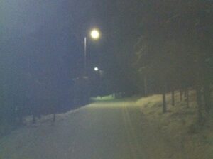 Jeg er så heldig at jeg bor like ved en lysløype. I går kveld ble det omsider en liten treningstur