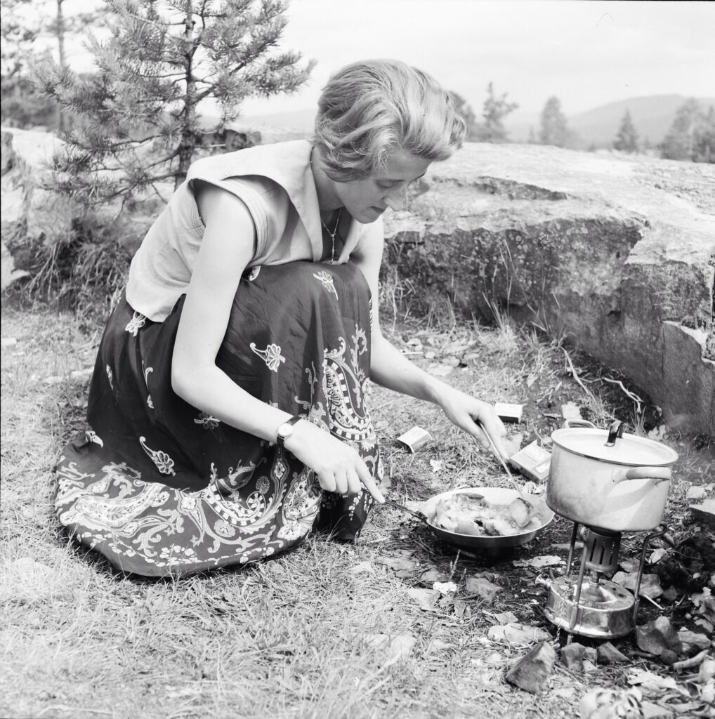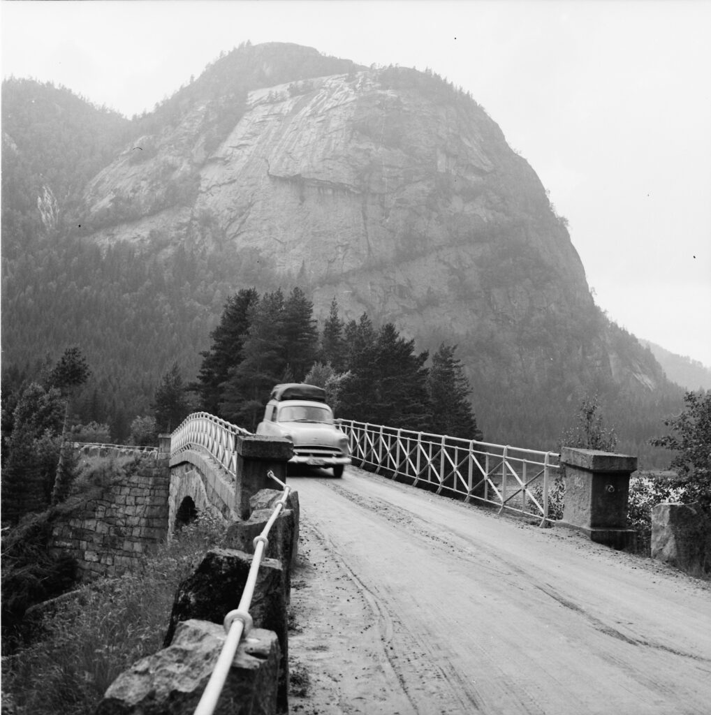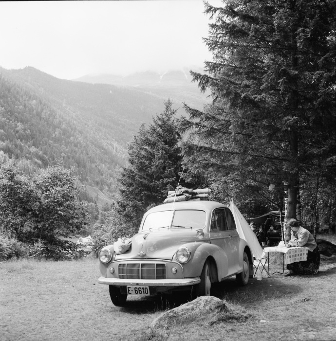 Bildene nedenfor er nok fra en ferie min far og mor hadde da de var ganske nygifte. Jeg vet ikke noe om turen annet enn gjennom min fars merking av bildene. Turen gikk gjennom Telemark, til Rjukan, deretter gjennom Setesdal og til Arendal og Risør. En bilferie med overnatting i pyramidetelt, matlaging ute, campingstoler og bord, og med fisking og bading som hovedaktiviteter. Dette er vel en relativt enkel ferie målt etter dagens standard.