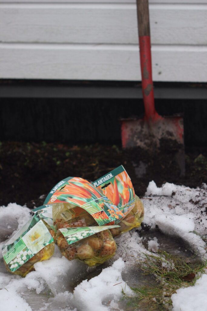 Jeg hadde aldri trodd at jeg skulle drive med hagearbeid ute hagen i januar måned, men nå har jeg opplevd det også. I går fikk jeg nemlig de siste løkene i jorda; løker som jeg ikke fikk tid til å sette i høst da jeg drev med løkplanting. Posene med løk har bare ligget i skapet siden da, og jeg tenkte at de nok aldri kom til å bli plantet. Men i går fant jeg ut at jeg ville prøve likevel, og det viste seg å være en enkel sak, for det var ikke frost i jorda i det hele tatt. Det er veldig uvanlig på stedet her jeg bor, for her pleier det å være kaldt om vinteren. Men nå i de siste ukene har det bare regnet. Og i går kunne jeg altså drive med litt hagearbeid, – det føltes helt merkelig nå som vi er i starten av januar.