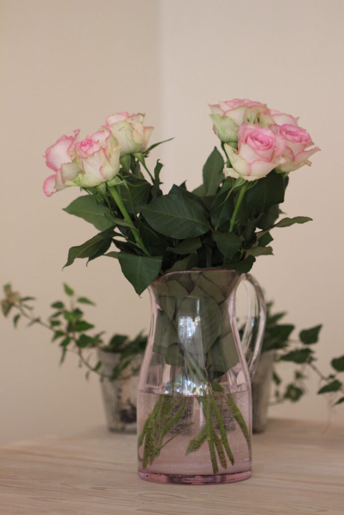 I dag har det ikke helt vært dagen her i gården. Jeg har bare ligget på sofaen, helt slått ut av forkjølelse. Har prøvd alle mulige kjerringråd etter tur – både hvitløk, te med sitron og honning, paracet, C-vitamin, og nesedråper osv… Nå satser jeg på at ett av dem hjelper slik at jeg er back in business i morgen. Noen pene blomster på bordet hjelper forresten alltid, enten man er forkjølet eller ikke.
