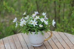 Fortsatt blomstrer det vakre hvitveis i skogen utenfor huset her jeg bor. Hvitveisen står nesten som hvite tepper i skogbunnen,