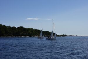 SKJÆRGÅRDSØ Nu glider båten mot skjærgårdsøen, en ø i havet med grønne strande. Her lever blomster for ingens øyne, de