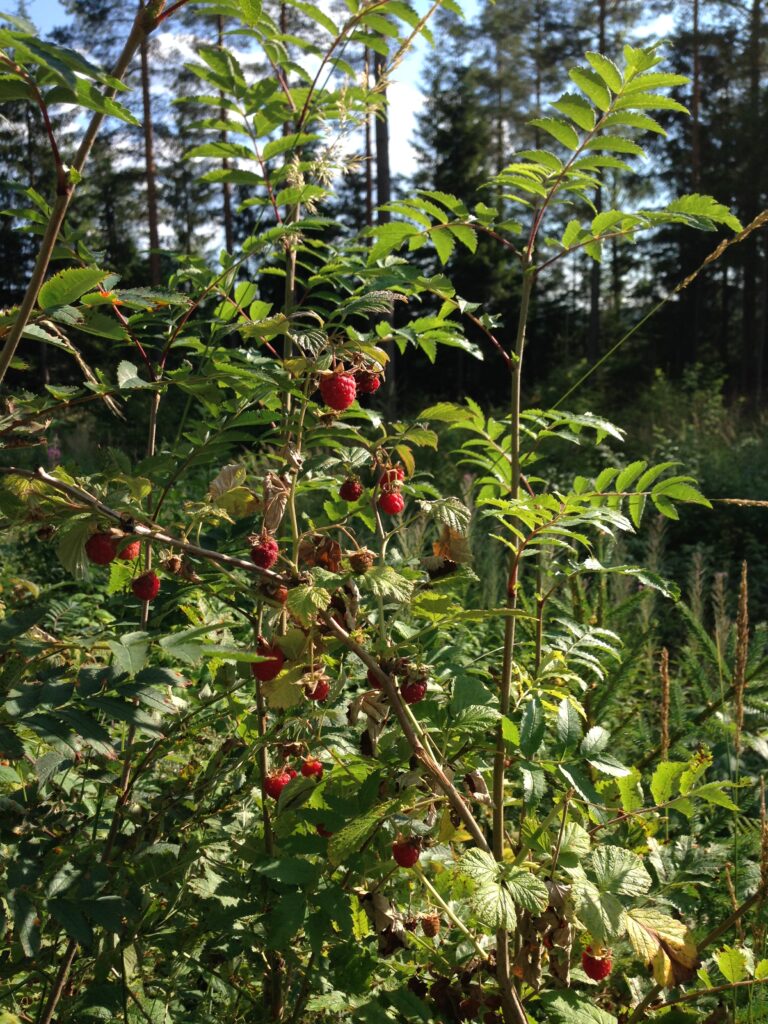 I går gikk jeg for å bade i Ørfiske, et vann som ligger midt inne i Nordmarka ved Oslo. Jeg fulgte en skogsvei for å komme meg dit, og det var så varmt, så varmt, å gå gjennom skogen. Solen glødet virket det som, og inne i skogen sto luften nesten stille. Det er også veldig tørt ute i skogen akkurat nå, – så det støvet langs veien der jeg gikk. Underveis passerte jeg staselige geitrams som sto i full blomst. Kratt fulle av villbringebær, og trær som lyste i rødt av moden rødhyll.