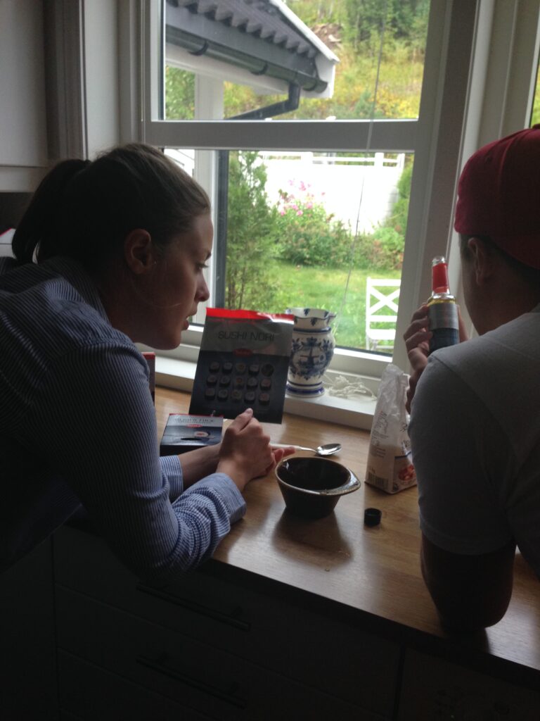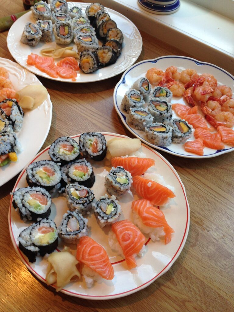 Her om dagen var det sushi som sto på menyen hjemme hos oss. Mine to eldste barn, Anine og Eivind, hadde lyst på sushi. Og siden de snart står på farten for å dra til sine studiesteder, fant vi ut at et sushi- måltid ville passe fint for en liten farvel-middag. Jeg har ikke laget sushi før, og har aldri visst hvordan den matretten fremstilles. Så denne gangen var det jeg som måtte lære av dem. Sushi viste seg å ikke være så vanskelig å lage selv som jeg hadde trodd, det gikk ganske raskt unna. Her får du oppskriften og fremgangsmåten for hvordan lage sushi hjemme.