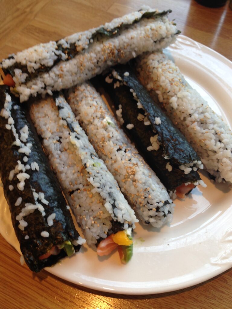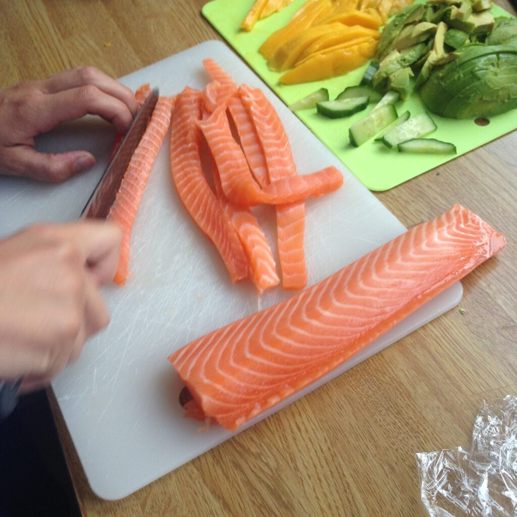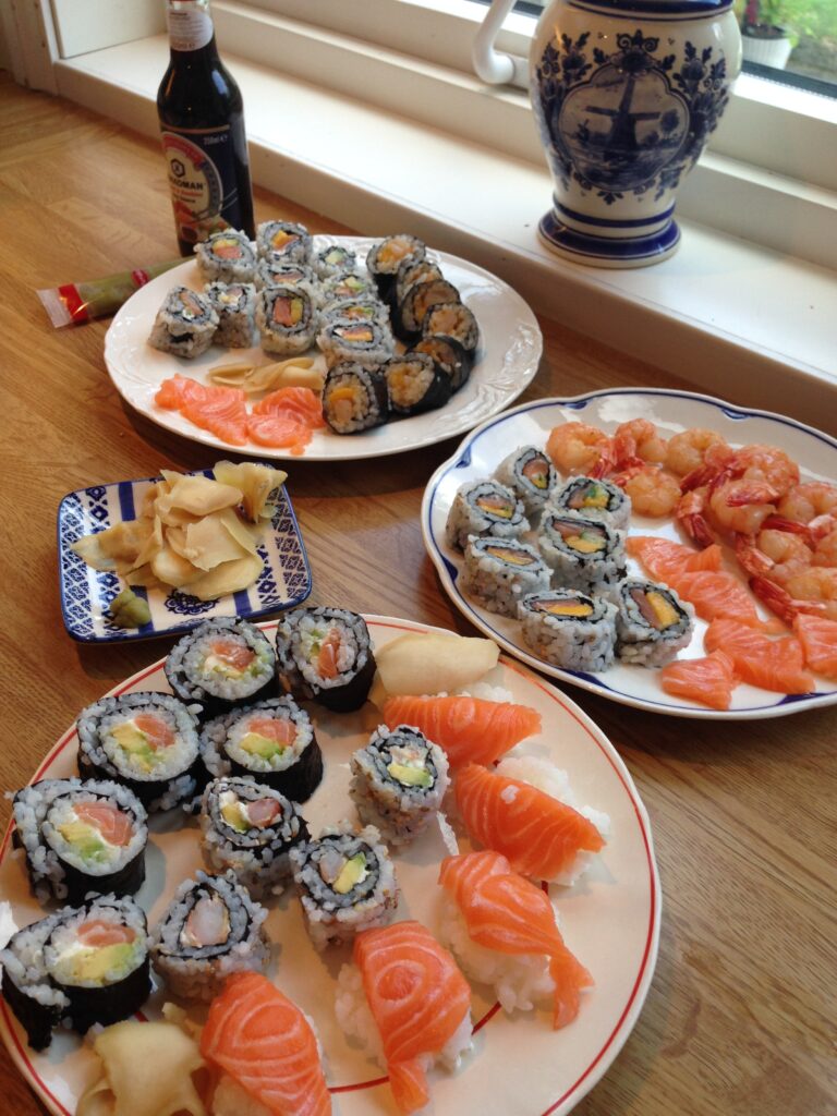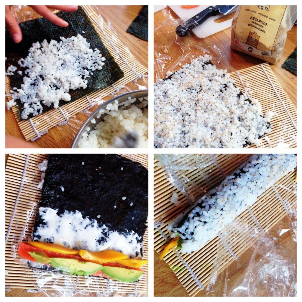 Her noen bilder fra matlagingen, og nederst ser du resultatet – et flott og smakfullt sushi-måltid:)!