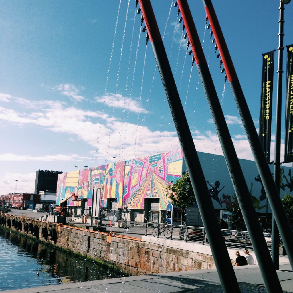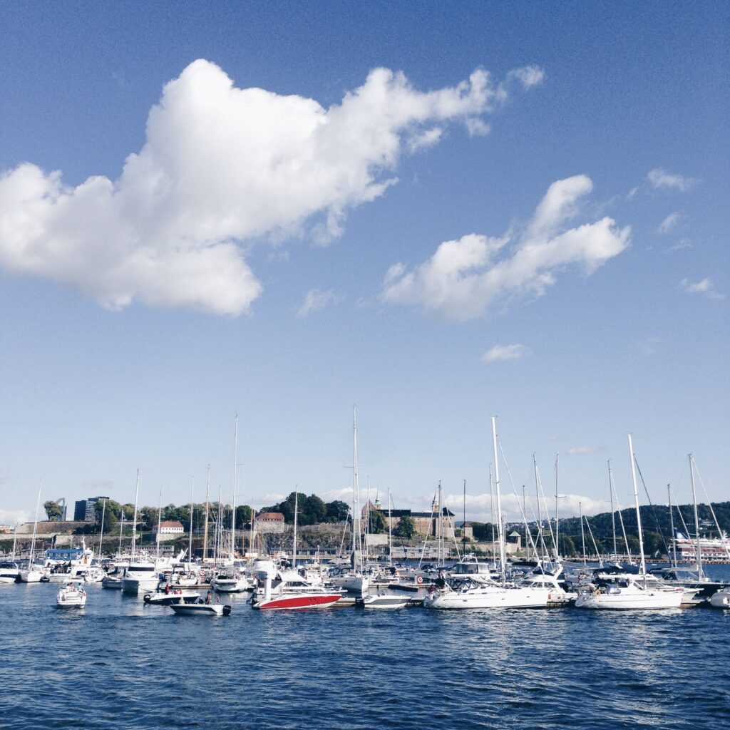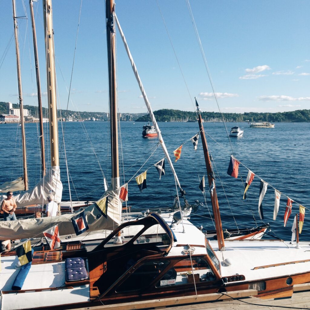 Båtliv ved Aker Brygge. Fra Aker brygge gikk vi videre ut på Tjuvholmen. Der var det koselige restauranter, gallerier, vakker beplantning, og et bymiljø som innbyr til aktivitet og rekreasjon i en kunstnerisk atmosfære: