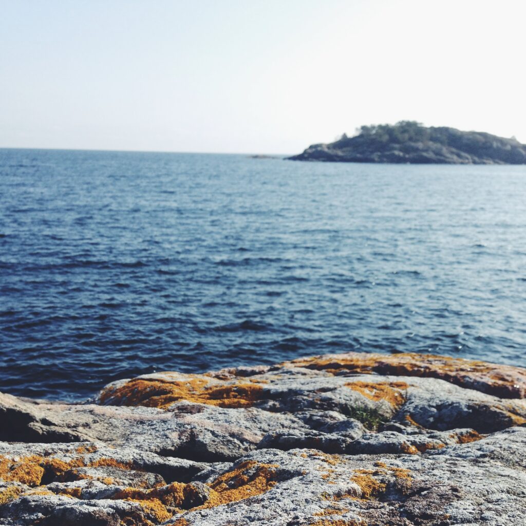 Nå på høsten hviler det en ro over kystdistriktet som ikke er der om sommeren. Båtene er i ferd med å legges i opplag, og utestedene har stengt for sesongen. Alt er litt roligere. Denne helgen var det ikke så mange folk å se, verken ute på tur eller på sjøen. Det var en flott opplevelse å vandre langs kyststiene, nyte høstfargene og de fortsatt blomstrende markblomstene. For så å ta en pause og skue utover sjøen.