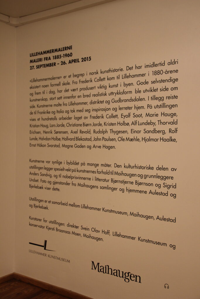 Av og til er det fint å kunne benytte søndagen til kulturelle aktiviteter. Det gjorde jeg i går. Da gikk jeg sammen med min mor og så utstillingen «Lillehammermalerne – maleri 1885-1960» på Maihaugen på Lillehammer. Utstillingen kureres av Lillehammer Kunstmuseum, og er en samproduksjon mellom Lillehammer Kunstmuseum og Maihaugen.