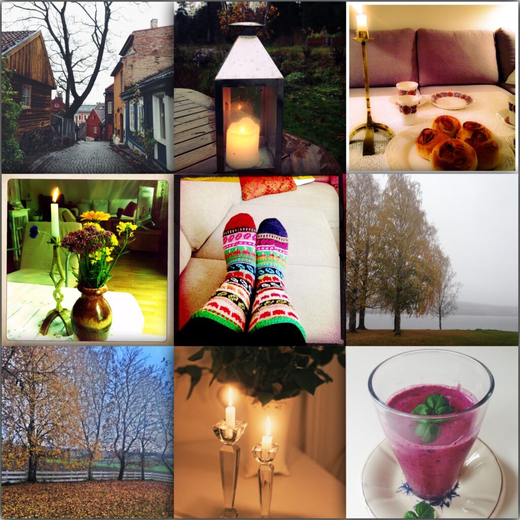 Her noen bilder fra de siste par ukene. Selv om det har regnet mye, så har høsten vært fin her med vakre høstfarger. Noen av bildene er fra turer, både i skogen og i byen. Andre viser høststemninger ute og inne.