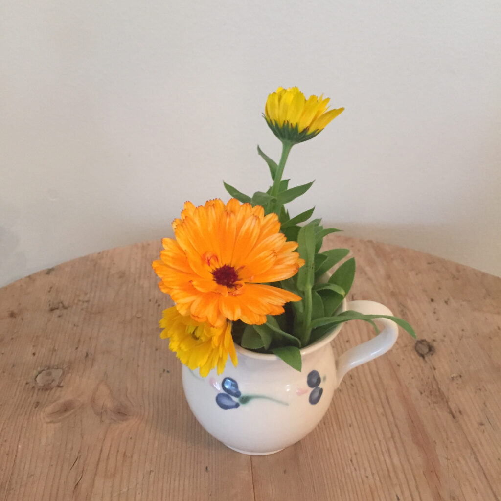 Ringblomst i en fløtemugge.