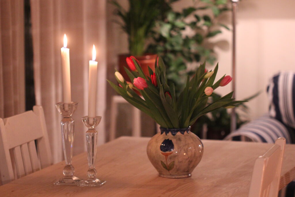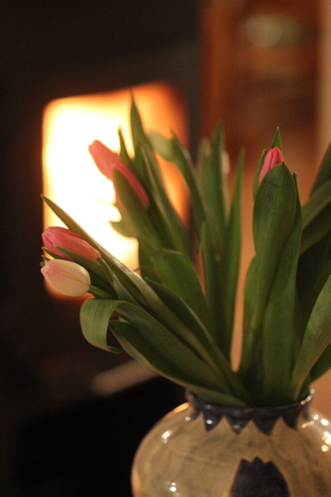 Fargesprakende tulipaner prydet bordet på fredag ettermiddag.