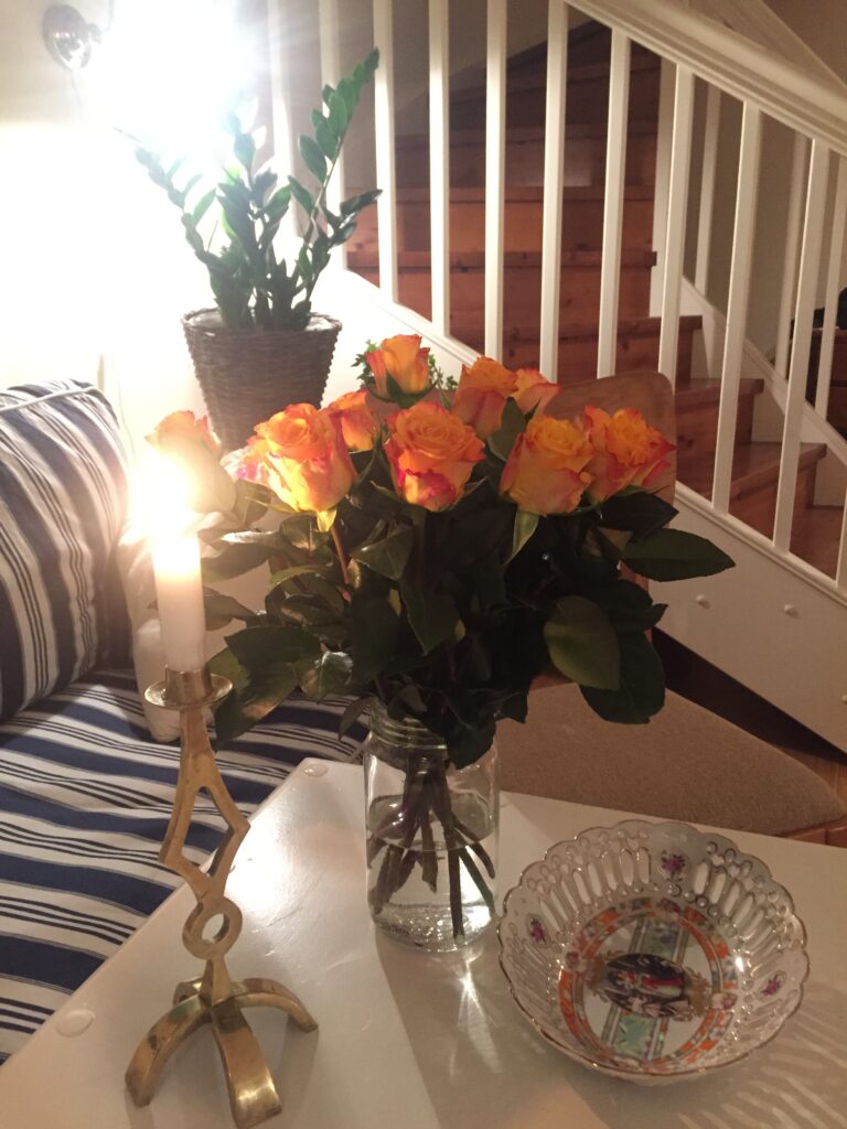 Nå har jeg akkurat satt meg ned i sofaen med noe rødt i glasset. Ute suser det i tretoppene. Inne har jeg tent levende lys, og snart er det klart for gullrekka på tv.