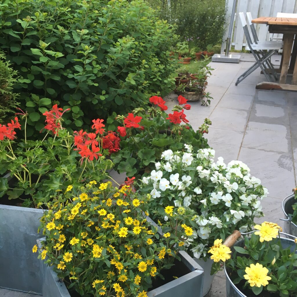 Sommerblomstene som jeg plantet i vår, blomstrer allerede frodig.