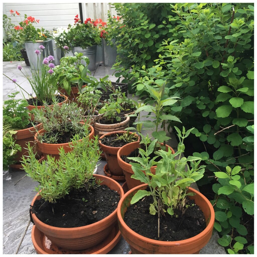 En liten rapport fra hagen i slutten av juni: Det er torsdag ettermiddag, og ikke akkurat tidspunktet for å kose seg ute i hagen. Det har bare såvidt sluttet å regne, og fortsatt er det grått og kaldt. Dessuten yrer det av ekle, stikkende knott ute i hagen, sikkert på grunn av at det har regnet. Så jeg nøyer meg en liten runde rundt hagen, for å se an forholdene i stedet (og før jeg rømmer inn fra all knotten). Urtekrukkene ser forresten ut til å trives, og de blir sikkert enda finere utpå sommeren!