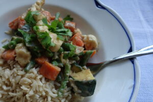 Her følger oppskrift på en lettlaget og sunn vegetarisk middagsrett: Grønnsakswok med peanøttsaus Til 4 personer Ingredienser Til woksausen 2,4