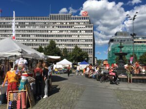 Sommerettermiddag i byen. Idag gikk jeg ut og spiste, etter jobb, sammen med Anine, eldste datter. Vi gikk på Politiker’n,