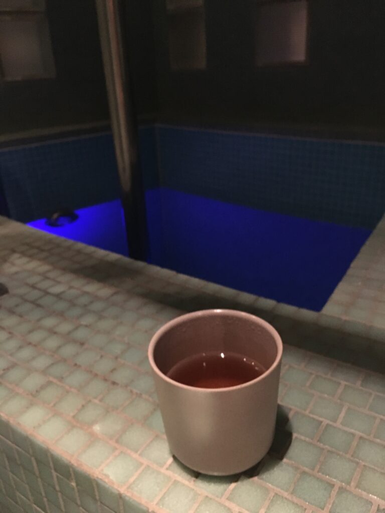 Mediterende musikk og en kopp med urtete før spa-behandlingen. Jeg valgte en spa-pakke med klassisk massasje og ansikts- og hodebunnsmassasje. Det var absolutt avkoblende og energigivende! (nesten nirvana i det fjerne).