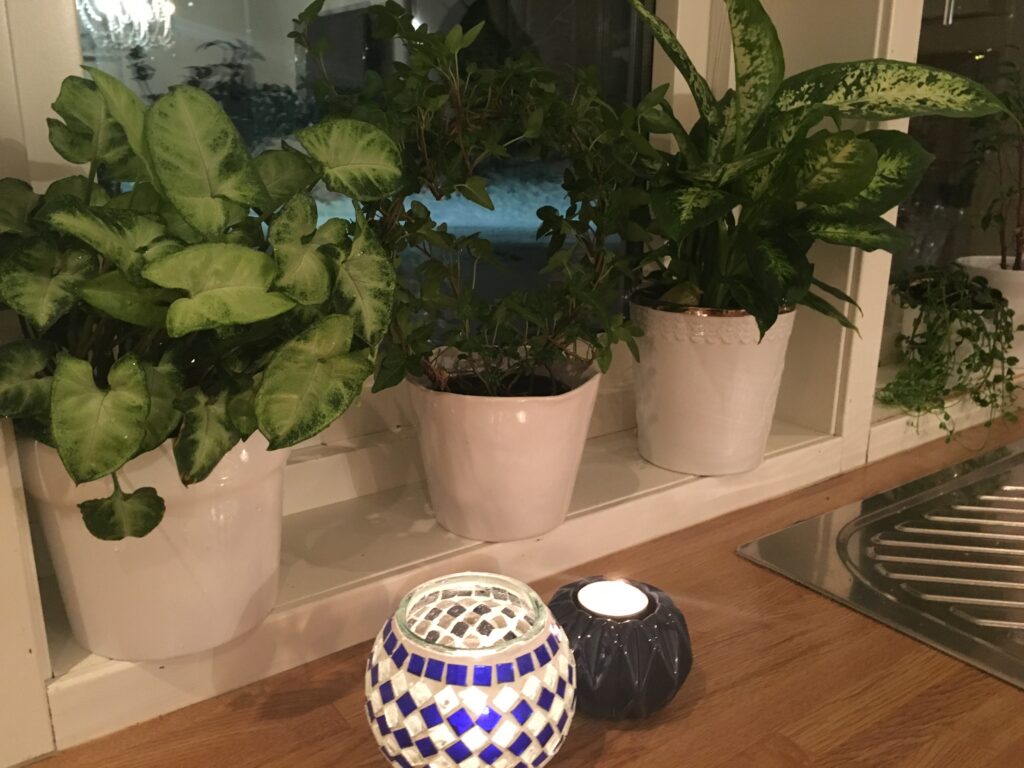 Det blomstrer frodig i kjøkkenvinduet og det er nesten som om plantene forstår at det går mot vår. Men utenfor er det fortsatt full vinter.