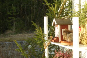 Jeg har fått noen nye venner ute i hagen! Ekornene oppdaget veldig fort fuglematen som jeg satte ut like før