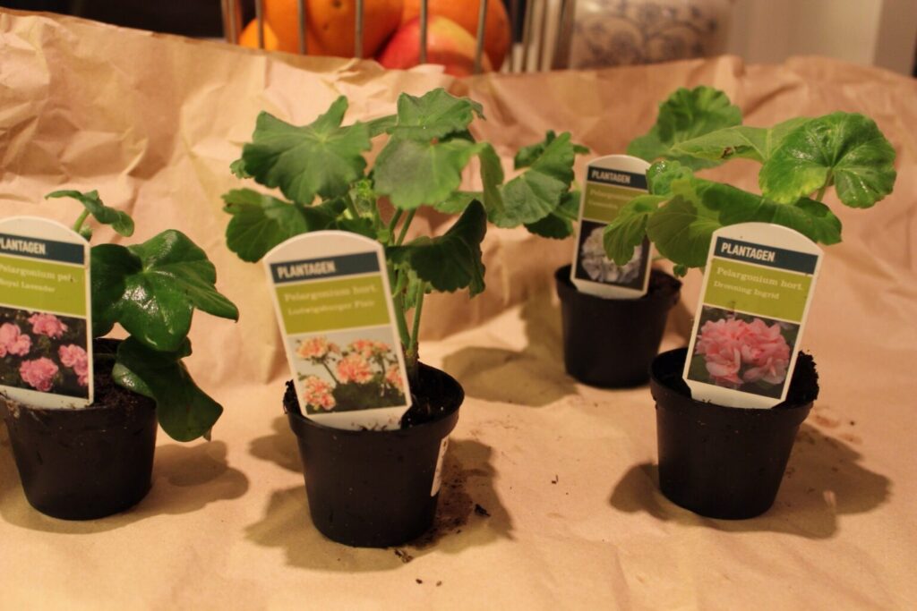 Planting av pelargoniastiklinger.
