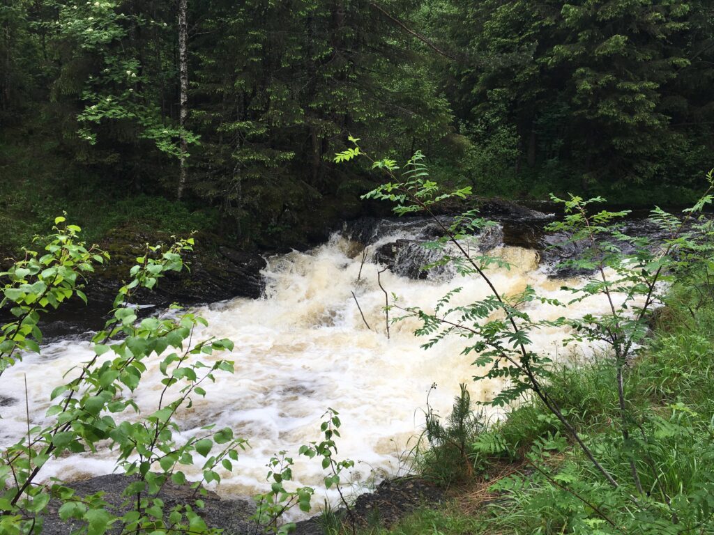 Det har stort sett regnet i hele dag, men hva gjør vel det når det er så uendelig vakkert ute? Det var så fint ute i dag, med grønne og frodige blomster og trær. Nedenfor huset gikk elva stor, hvit og skummende.