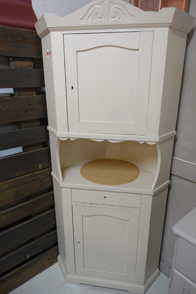 Dette fine hvitmalte hjørneskapet for eksempel, kan bli ditt for den nette sum av kr 800,- De hadde et annet hjørneskap som lignet (se bildet over), og det kostet kr 500,-.