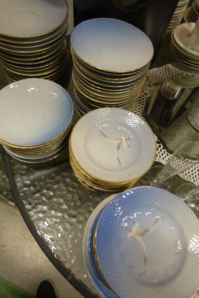 Særlig er utvalget av dekketøy, glass og pyntegjenstander stort i butikken.