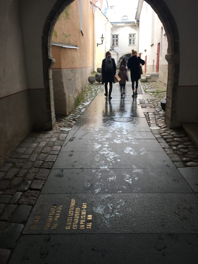 Her var en tidslinje med Tallinns historie preget inn i fortauet.