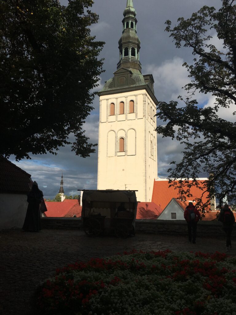 Som en del av programmet var det også omvisning i gamlebyen i Tallinn. Gamlebyen i Tallinn synes jeg var kjempeflott. Det var helt spesielt der. Som å komme tilbake til en annen tid. Gamlebyen hadde vakre smug og gater, middelalderhus, og en stor ringmur som omsluttet byen. Overalt var det fargerike blomster og velholdte parker.