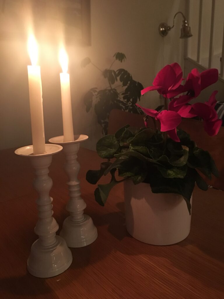 Levende lys, og bål på peisen fikk avslutte søndagen.