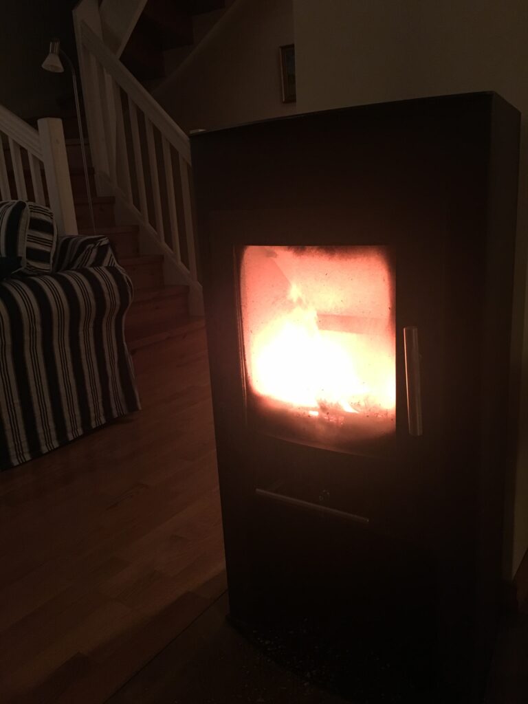 Nå er det sent søndag kveld og litt småkaldt i huset. Godt da med varme på peisen!