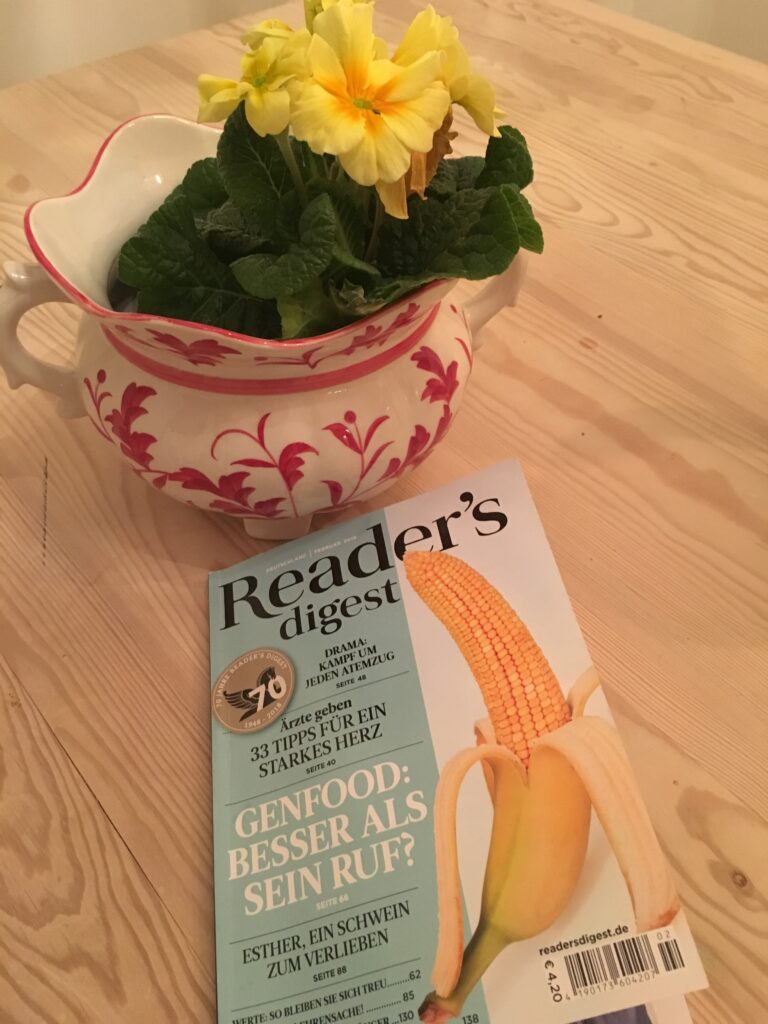 Jeg har fått lest litt tysk i helgen. I Readers digest – Det Beste! Et godt gammelt favorittblad, som jeg nesten hadde glemt. Men nå har jeg funnet det igjen, på tysk! Artiklene er veldig bra, og de er fine å lese for å få frisket opp ordforrådet.