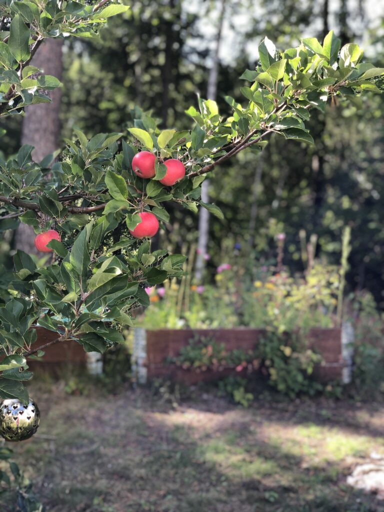 Men ennå er det sommer! Jeg puster inn sensommerens dufter og gleder meg over hagens rikdom. Det er så fint her akkurat nå. Fortsatt blomstrer fargerike sommerblomster og solsikker. På epletreet er det mer epler enn det noengang har vært.