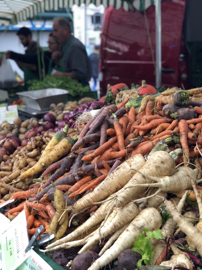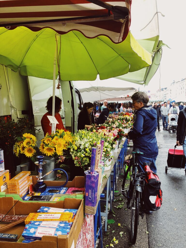 På markedet bugnet det av grønnsaker, blomster og friske råvarer.