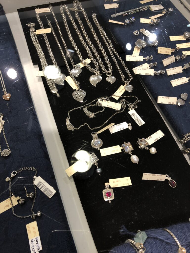 På Husfliden så jeg på smykker. Så fine! (heldigvis er det ikke så lenge til jul)