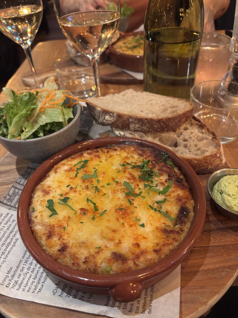 Det er også hyggelig å gå ut og spise i førjulstiden. Jeg koste meg noe skikkelig en ettermiddag på restauranten Fiskeriet tidlig i desember, der jeg bestilte fiskegrateng. Det smakte godt – skulle ønske flere restauranter kunne satse på tradisjonelle norske retter også.