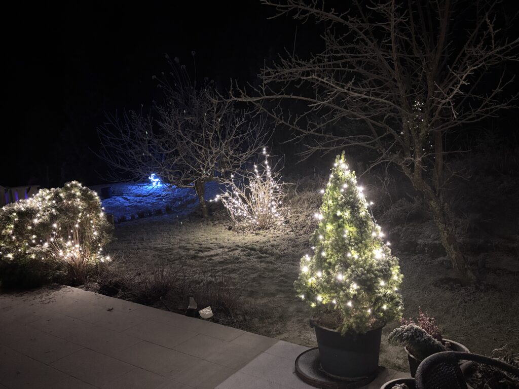 Julebelysning ute synes jeg også er veldig fint, men aller helst før jul. Jeg er ikke så glad i julelys langt uti januar. Disse fine julelysene ute i hagen gleder jeg meg over hver dag.