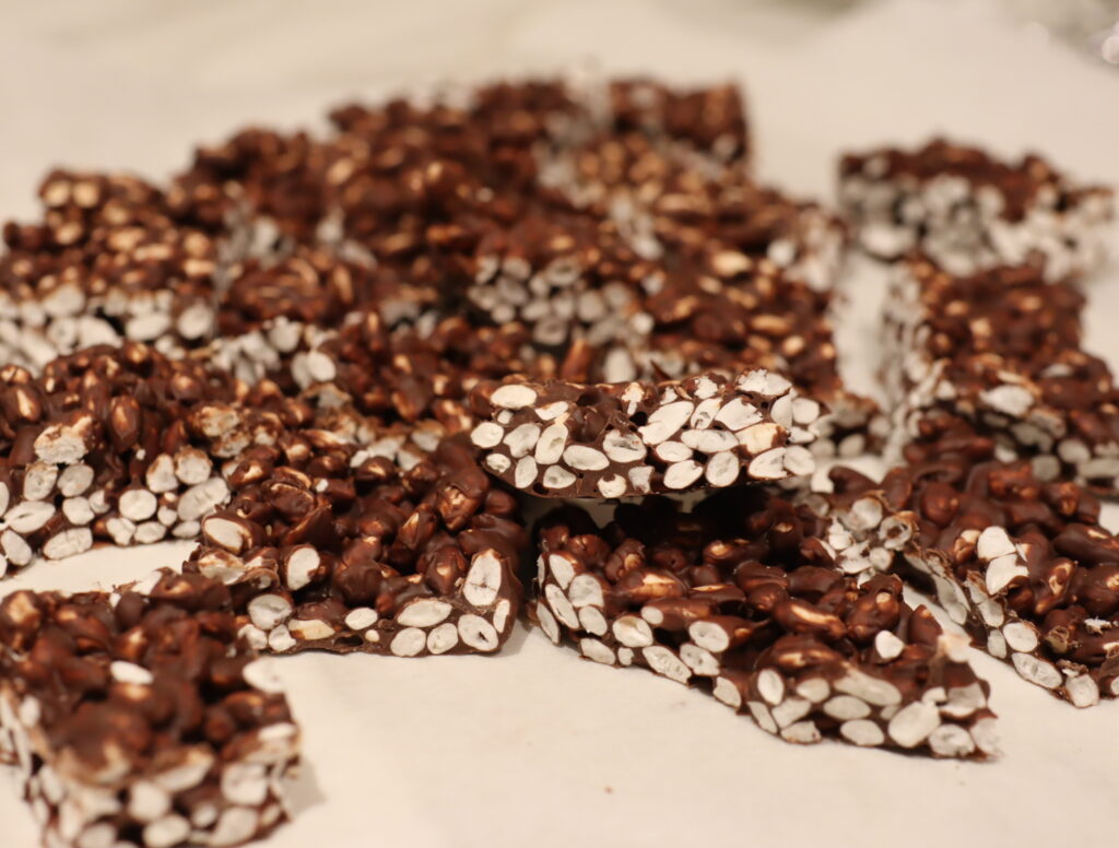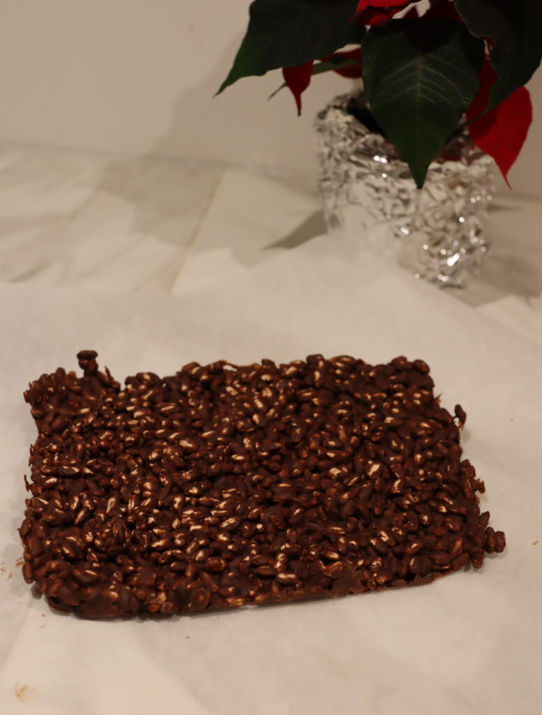 Julegodteri med sjokolade og puffet ris