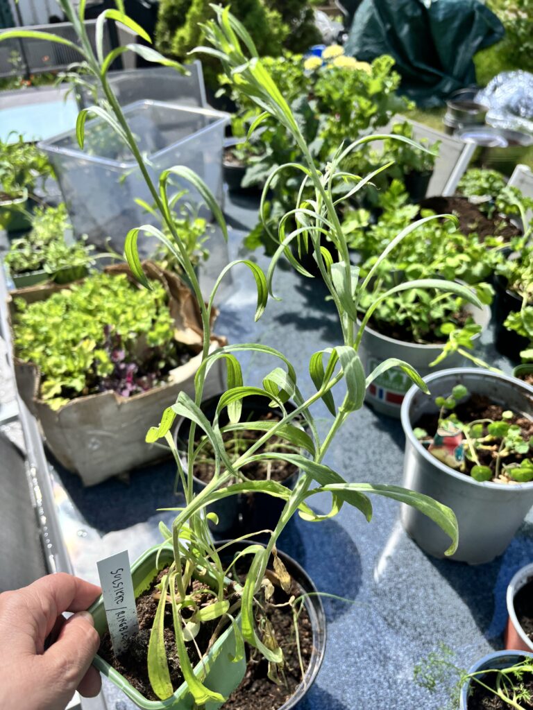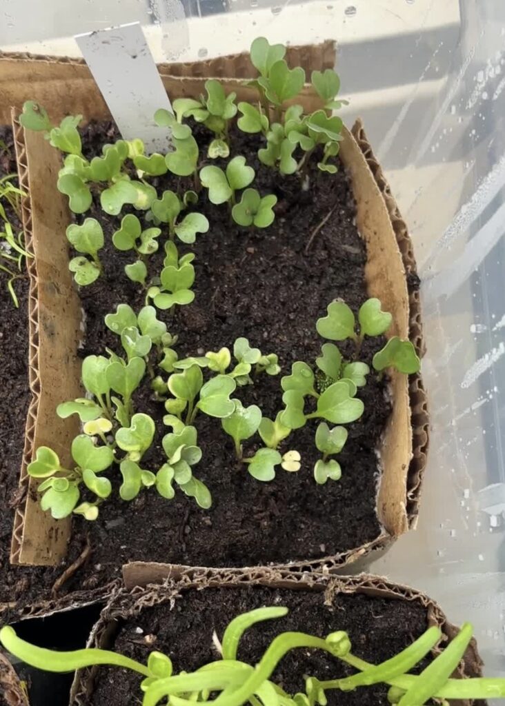 Blomkarse og ringblomst er sikre vinnere og gjør seg veldig godt mellom grønnsakene i plantekassene.