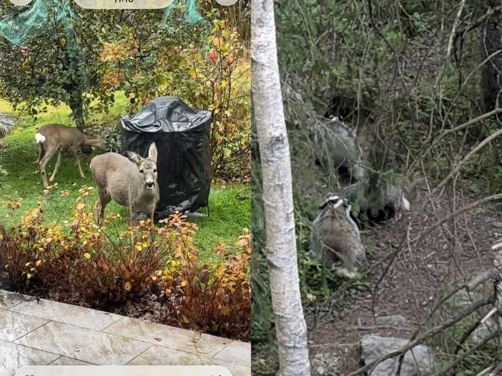 Grevling og rådyr. Det er jo på en måte artig å se ville dyr i hagen, men alt i alt er de ikke velkomne:)