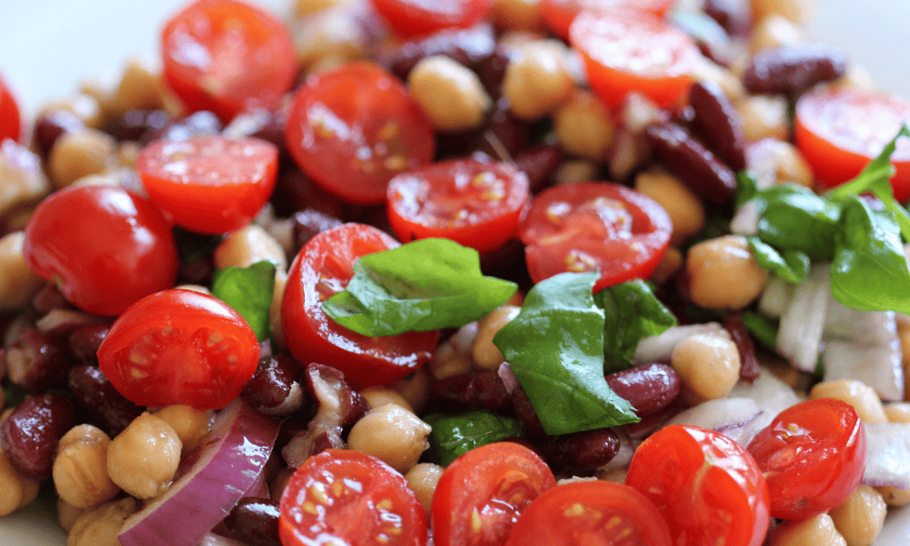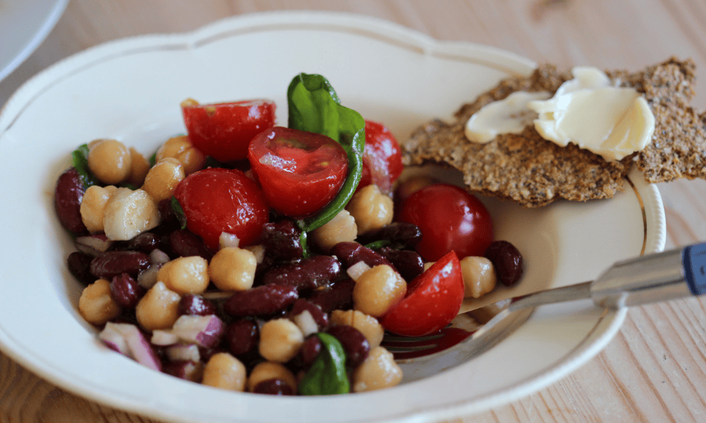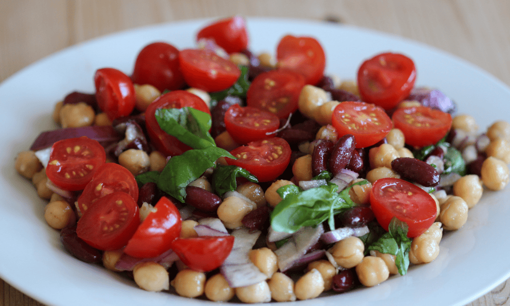 Trenger du en god og sunn vegetarsalat som også inneholder en del protein? Da må du prøve denne! Salaten er både smakfull og mettende, og har tomater og bønner som hovedingredienser.