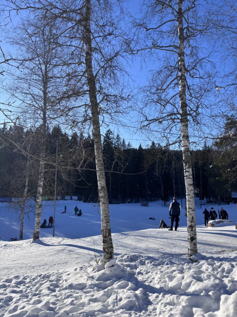 Dagen etter var det fortsatt kaldt, men likevel tok jeg meg en tur ut i det fine været. Men ikke på ski, det syntes jeg ble for kaldt. Det var uendelig vakkert ute, og mye folk å se ute på tur og i akebakken, både barn og voksne.