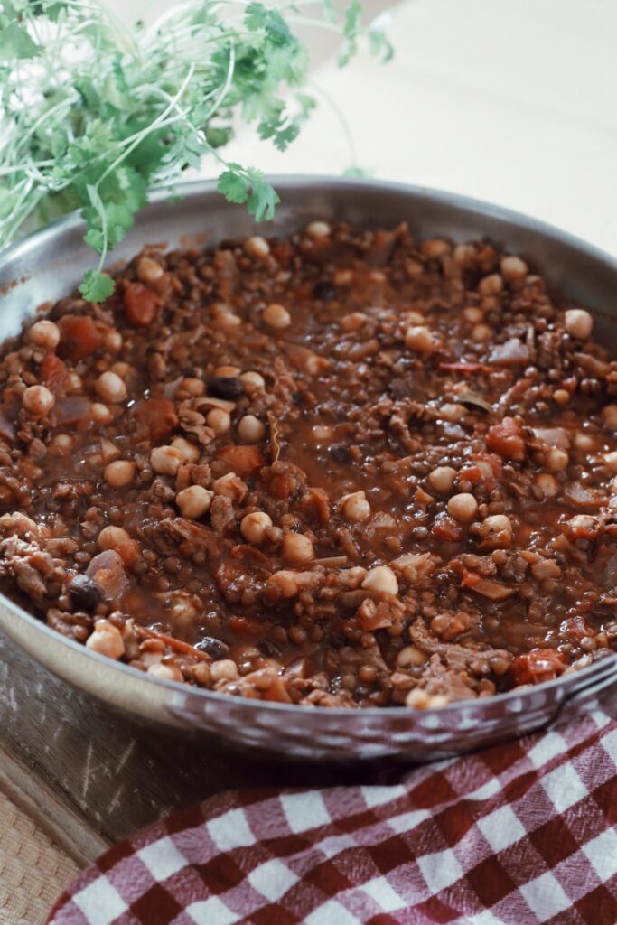 Dette er en perfekt rett for å få ned kjøttforbruket. Her bruker du nok lammekjøtt til å få smaken, men i tillegg er det lagt til rimelige ingredienser som linser, kikerter og løk for å drøye kjøttet.