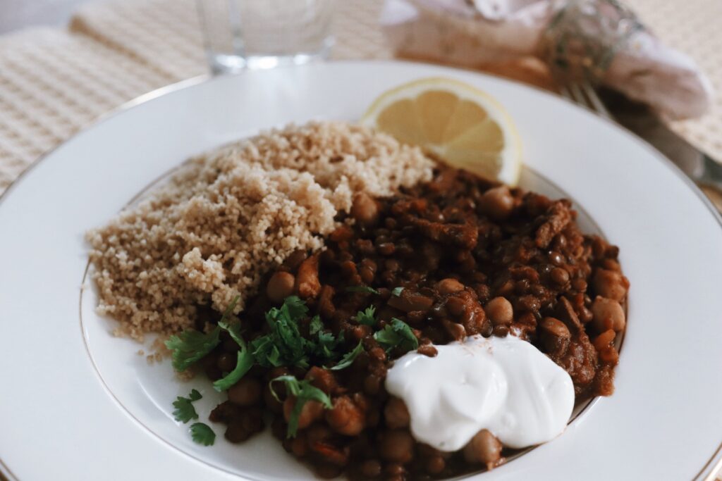 - Servering: Server gryten toppet med persille eller koriander, sammen med couscous og yoghurt.